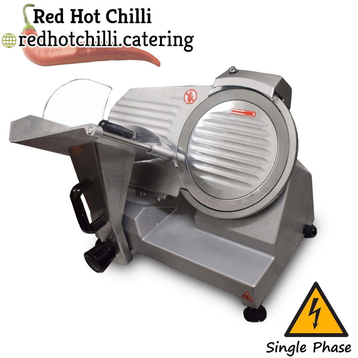 This Empire Commercial Heavy Duty Meat Slicer (EMP-MS-8)is an 8-inch (220mm) electric, semi-automatic gravity-fed slicer designed for commercial use in delis, restaurants, and butcher shops.