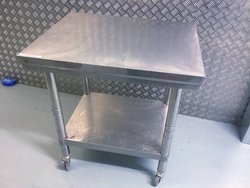 Square table on wheels. Sheet metal.65cm wide, 59cm deep, 80cm height