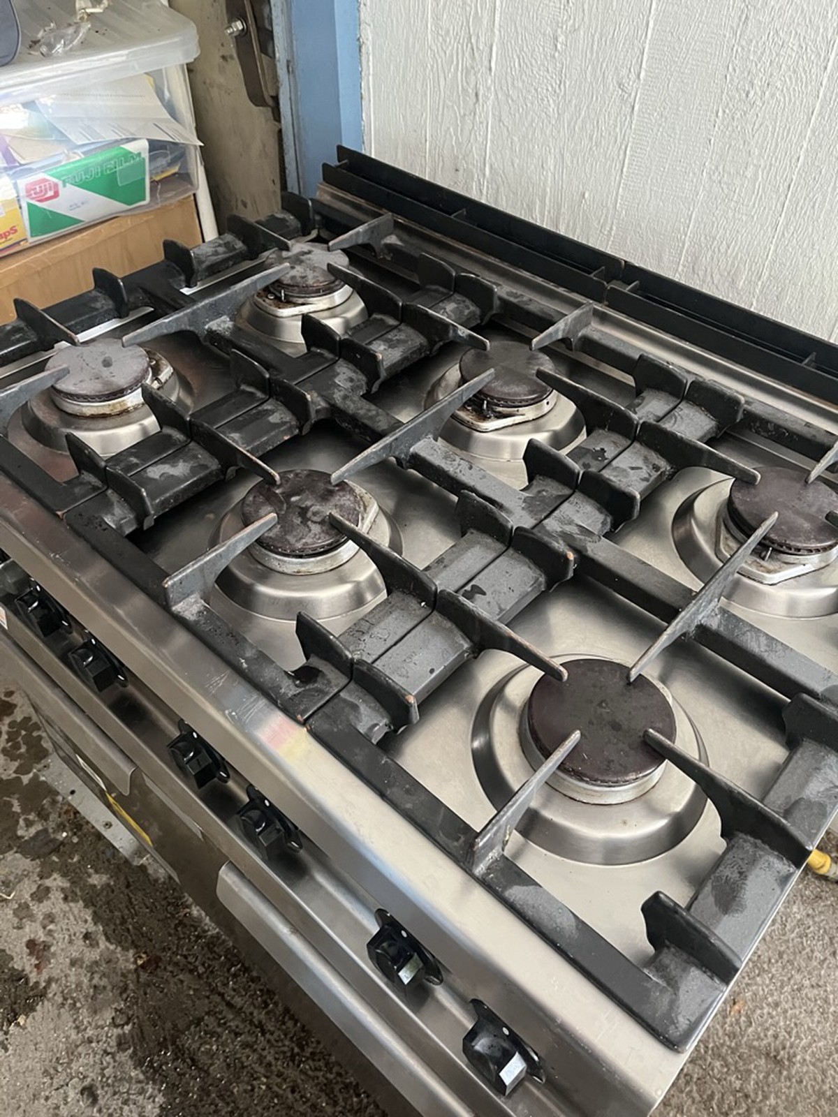 Used but in excellent condition 6 ring gas burner and oven with two shelves.All the attachments, rings and shelves supplied.