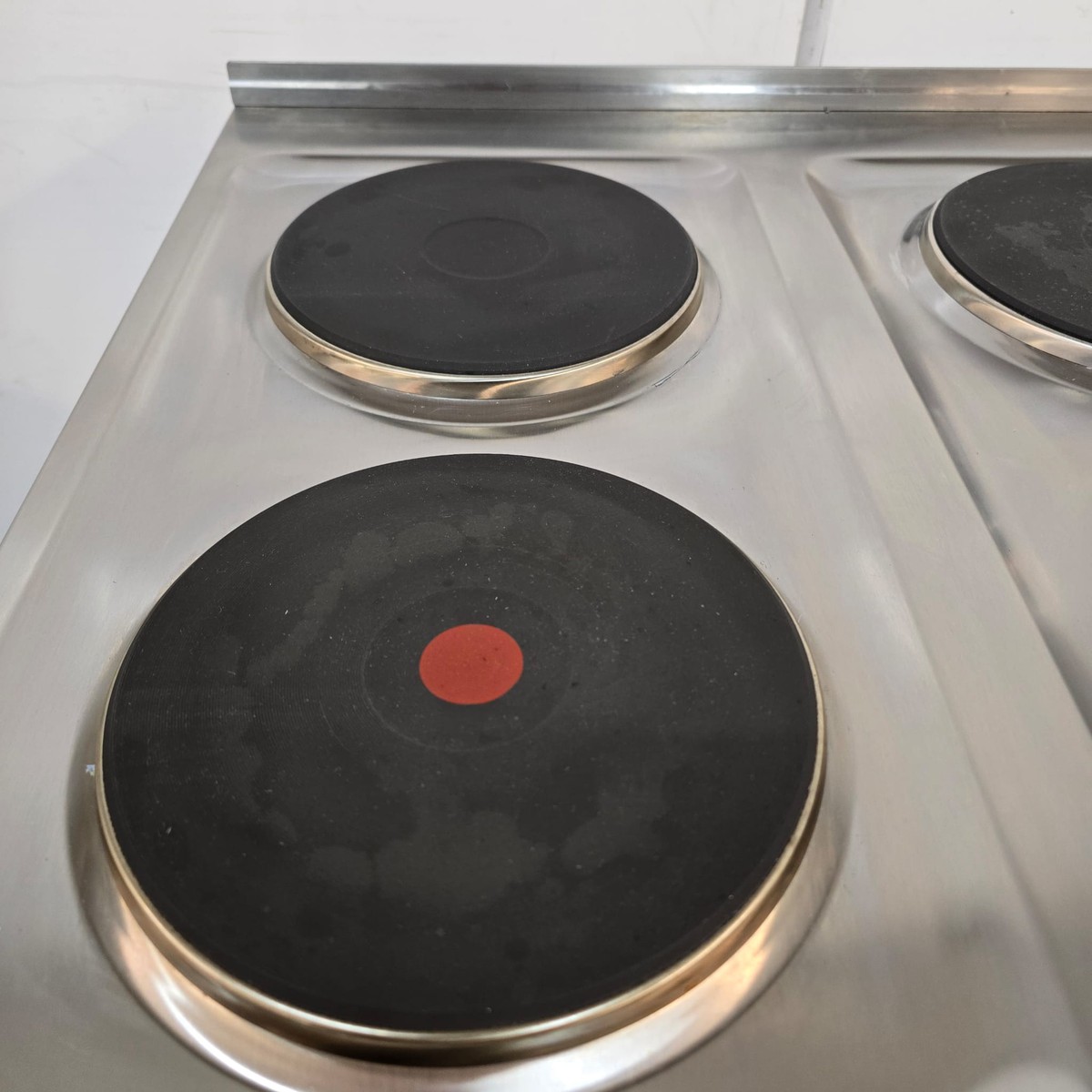 Powerful and reliable, the UK-made Lincat Silverlink 600 Electric oven range provides impressive cooking performance in any professional kitchen. Designed to be truly user-friendly and versatile, the oven features six powerful cooking rings across the top, giving you the option to fry, boil and simmer large pots and pans of food with precise control.Underneath, the powerful 6kW double oven cavity offers generous cooking capacity behind the two side-opening double doors. And as the oven is fan assisted and double insulated, the range is quickly brought up to temperature – essential for when the doors are being opened as often as they can be in a busy kitchen. The fully pressed hob and vitreous enamelled hob sections are both designed to be very easy to clean – an essential time-saving feature in a large commercial kitchen.