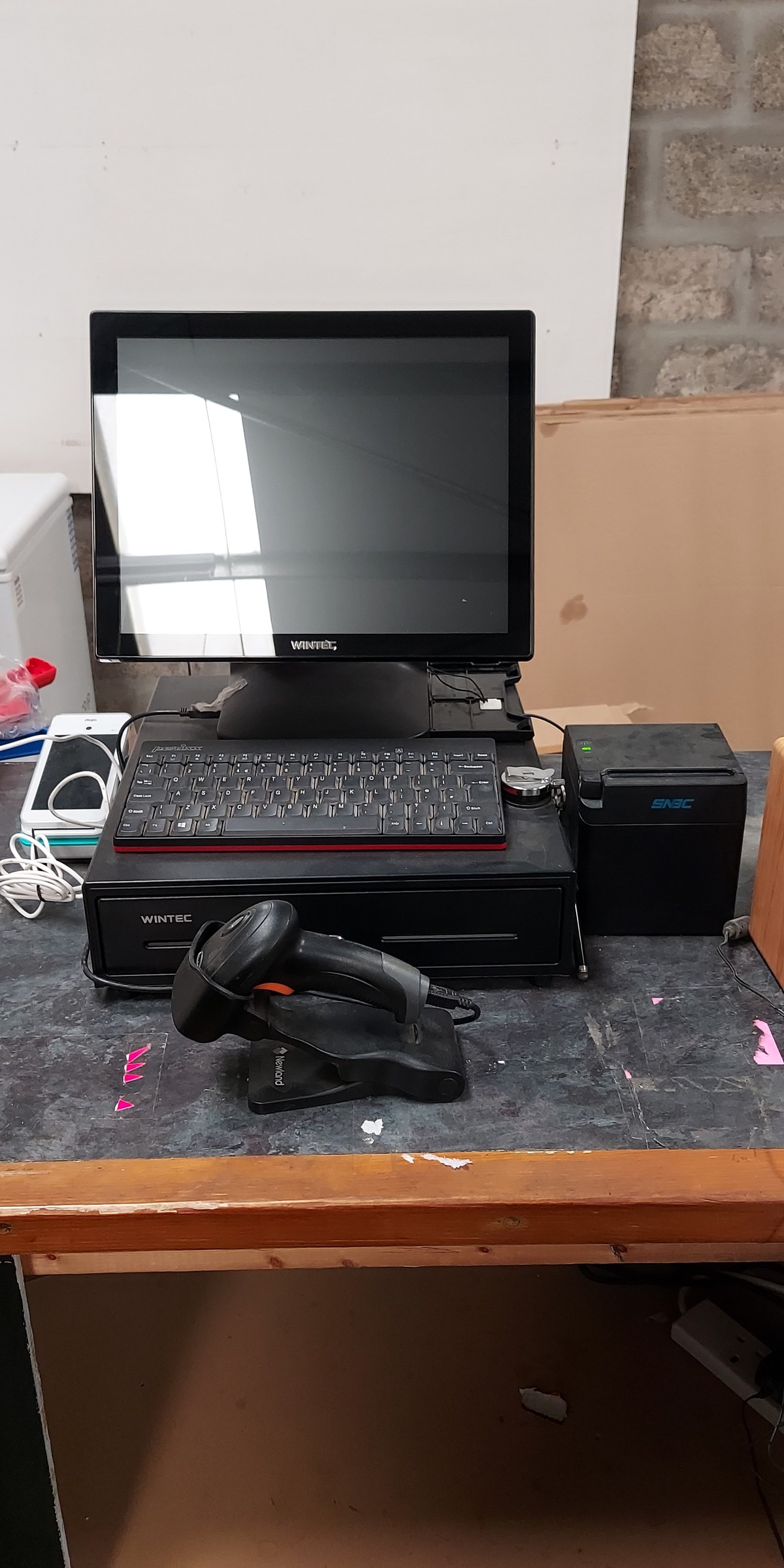 2 Wintec EPOS till systems, very good condition. Each till comes complete with cash drawer, thermal printer, hand held mobile bar code scanner gun and small keyboard. Fully integrable with card machines, dual input from touchscreen or keyboard. Customer screen enabling the customer to see what is going on their bill.These tills are 2 years old and were running ICR Touch, which is a web based system so you can log in from anywhere to see the days trade