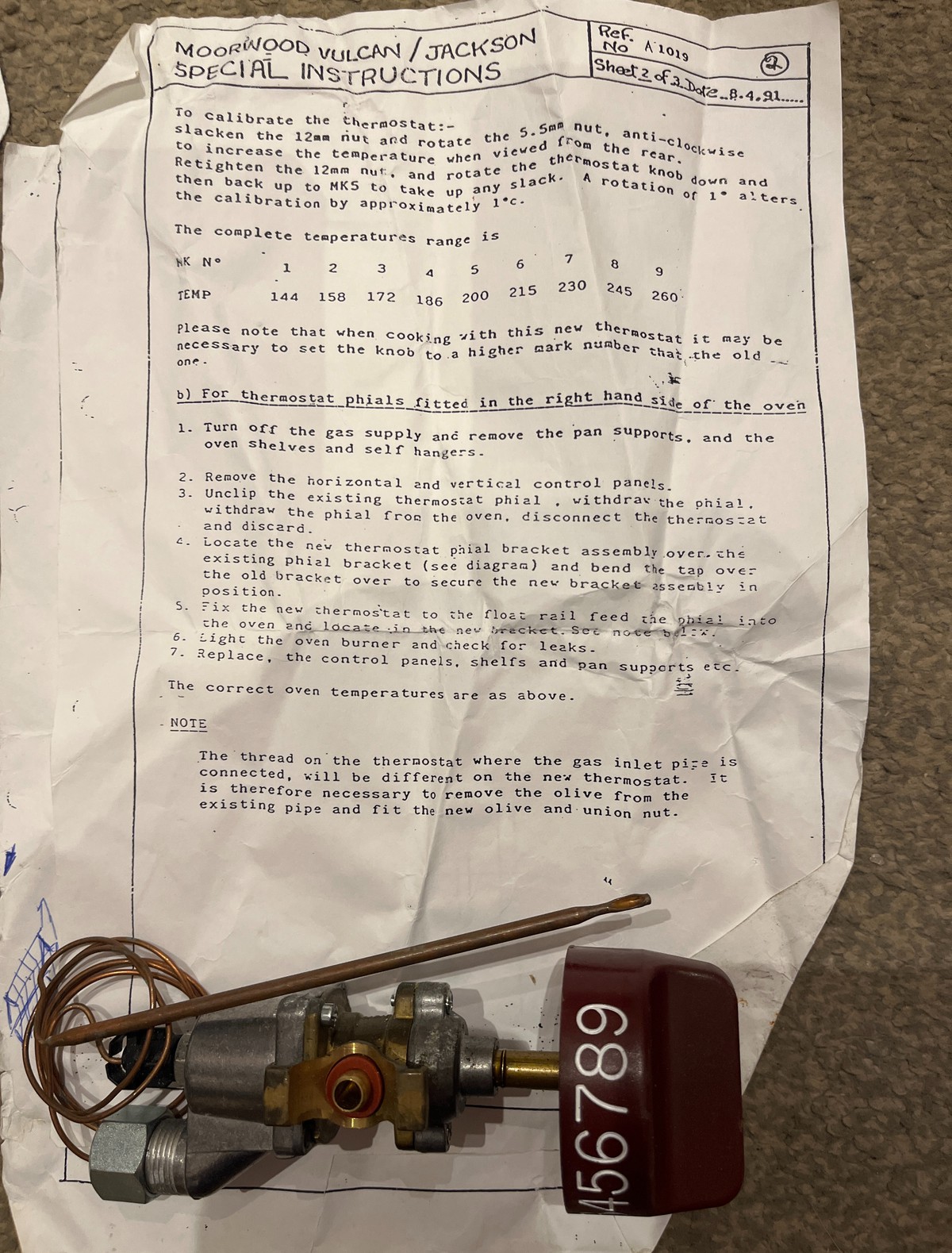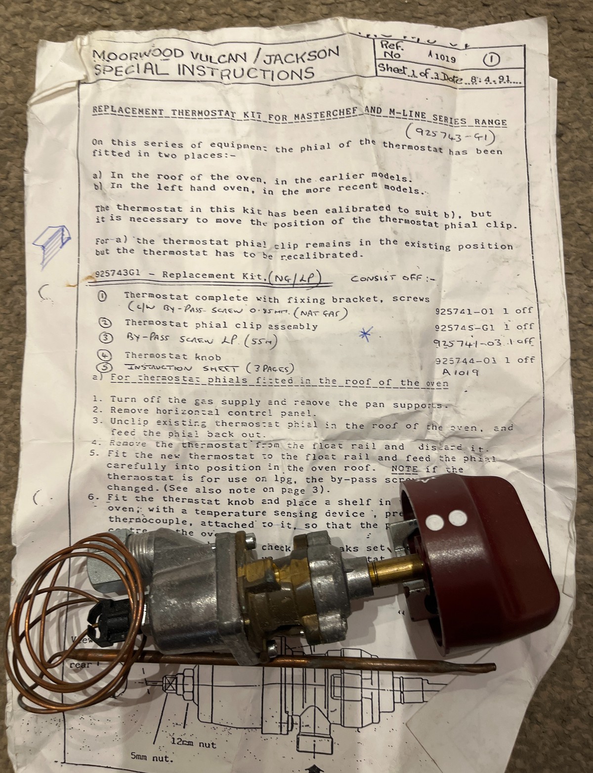 Moorwood Vulcan Viscount 925743-G1 Oven Thermostat - Delivery