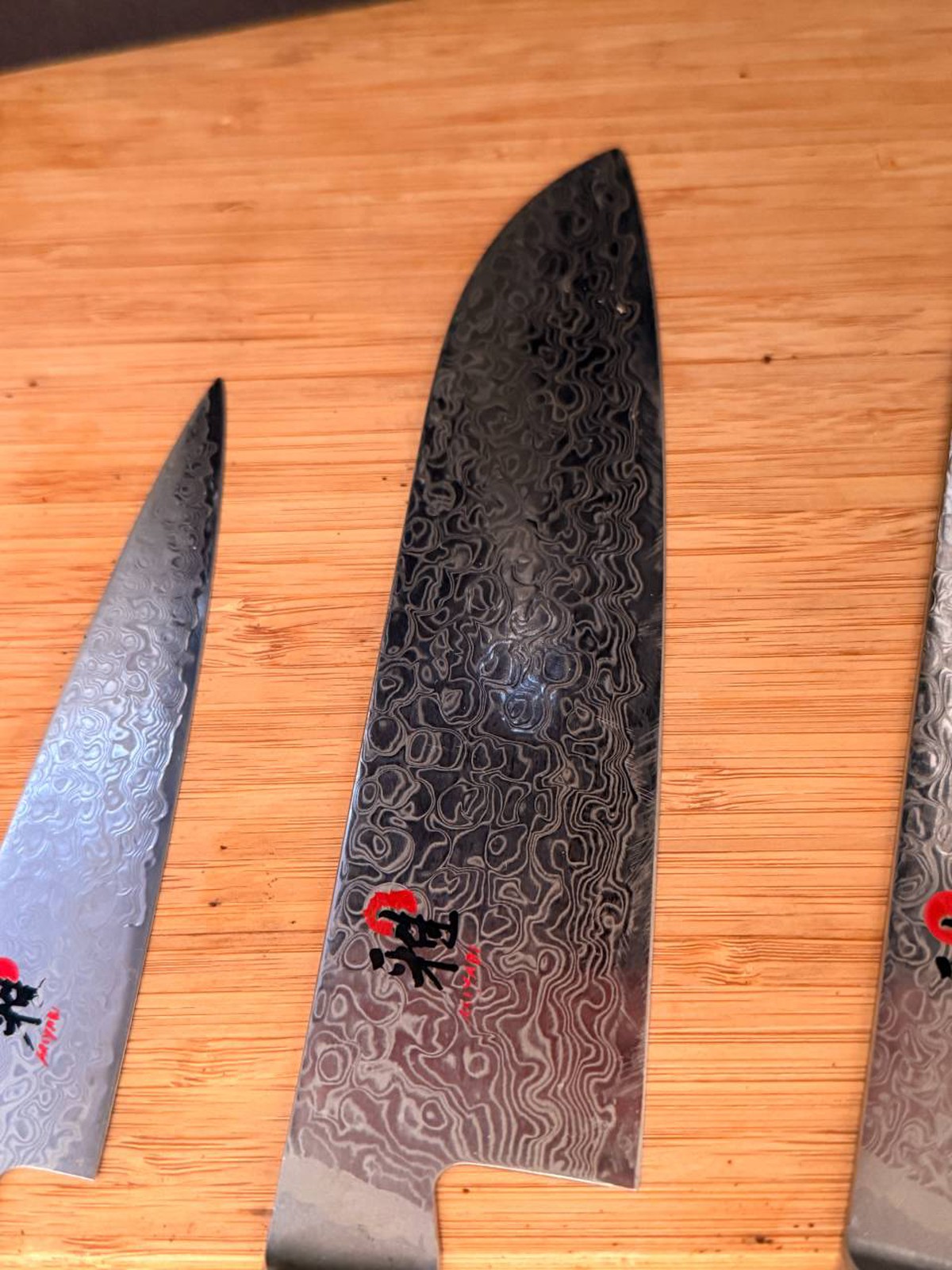 Miyabi 5000MCD Knives & Magnetic Knife Display Board Set | Used | Very Good ConditionAll Items in the Set (Name/Model Number/RRP Brand New):