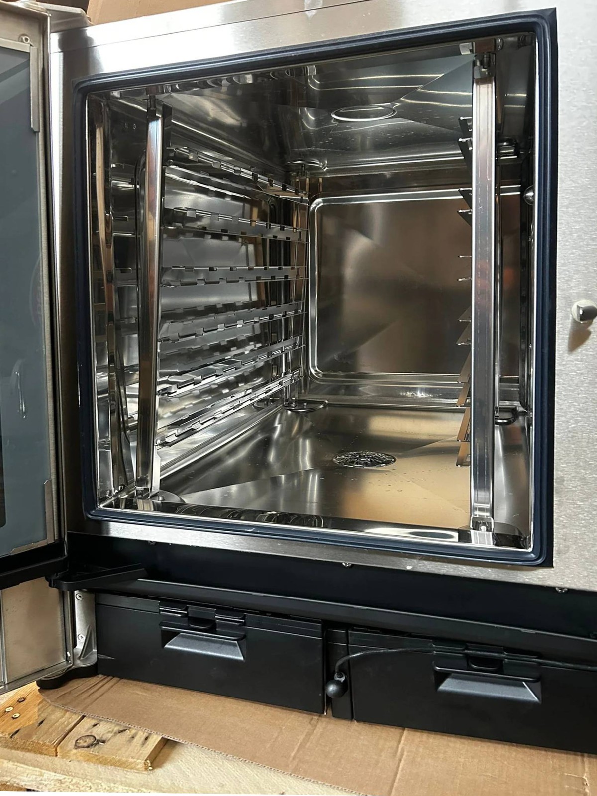The Lainox Naboo 6-Grid Gas Combi Oven is a reliable, easy-to-use cooking powerhouse for any busy kitchen. It runs on natural gas (LPG conversion kit supplied) for efficient performance. Cook with steam, convection, or a mix of both. The touchscreen makes it simple to pick recipes, adjust settings, and stay consistent every time. It heats up quickly, uses energy and water efficiently, and includes an automatic cleaning and descaling system to save you time at the end of the day. With its sturdy stainless-steel build, it’s a practical, long-lasting oven that fits smoothly into any professional setup.This is a Graded Item and is not in its original packaging but is brand new and never used. It is supplied with a 6 month manufacturer warranty which is validated at the point of installation. There are some cosmetic markings to the stainless steel (see pictured) but otherwise immaculate condition.