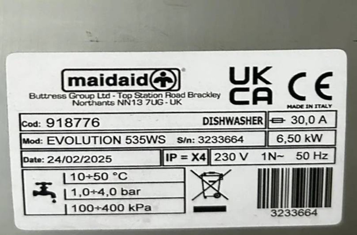 Maidaid EVO535WS Undercounter Dishwasher with internal water softener.CaterDirect Brand New price £3600 - B Grade Price £2200 - save over £1500.