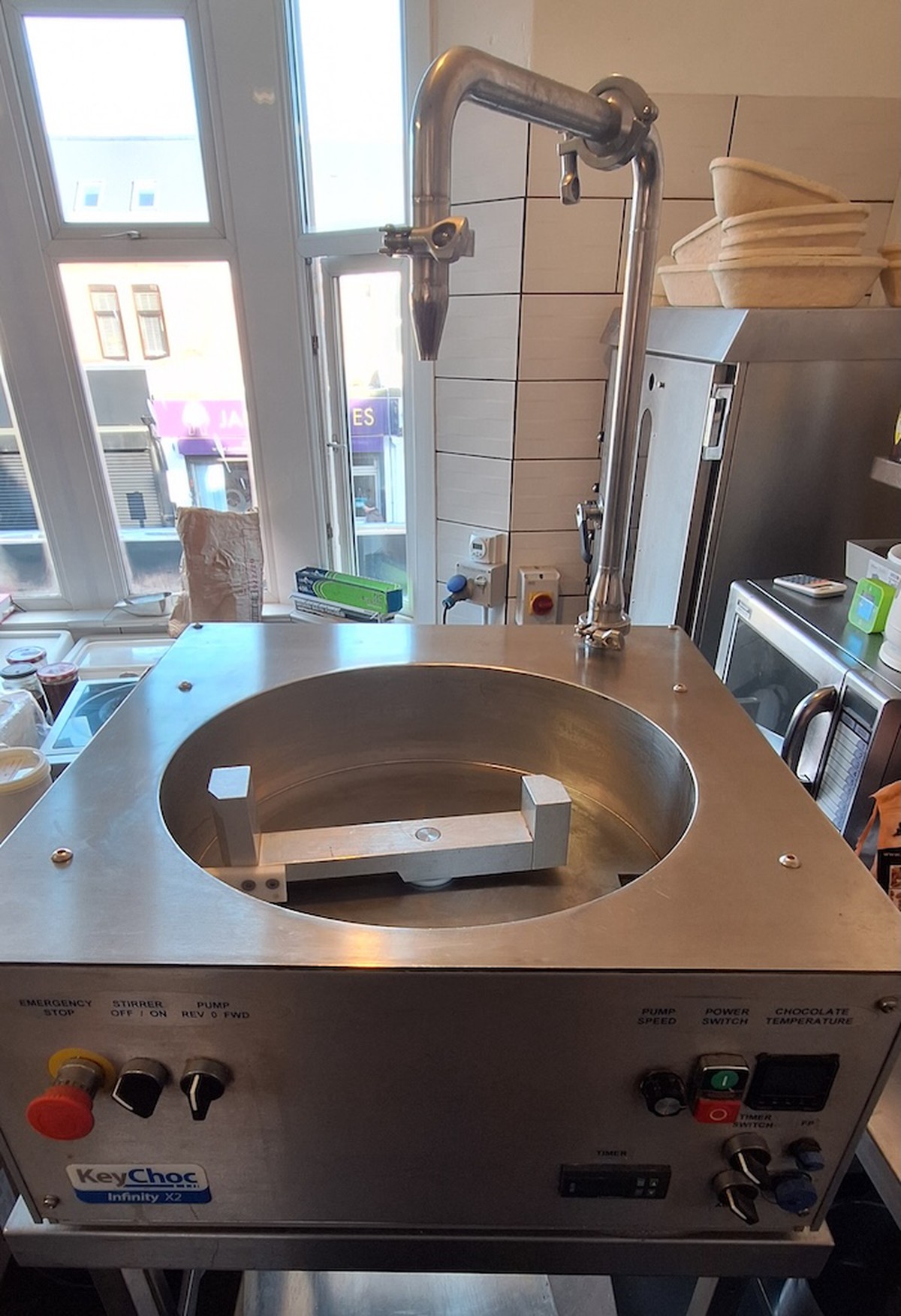 Suitable for filling moulds through the spout. Can also be used to deposit or enrobe using the optional attachments available.