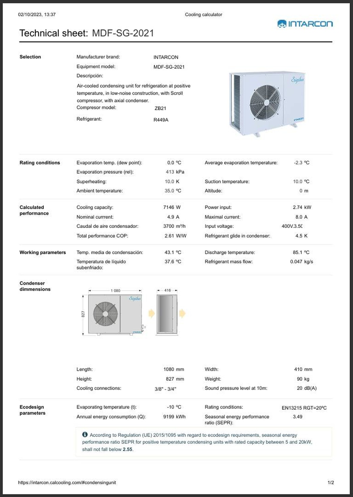 Intarcon housed weatherproof condensing unit model MDF-NG-2021 coupled with