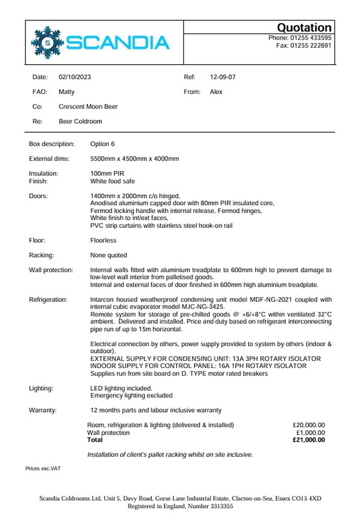 Scandia- Walk In Fridge 4.5m x 7.5m- Midlands