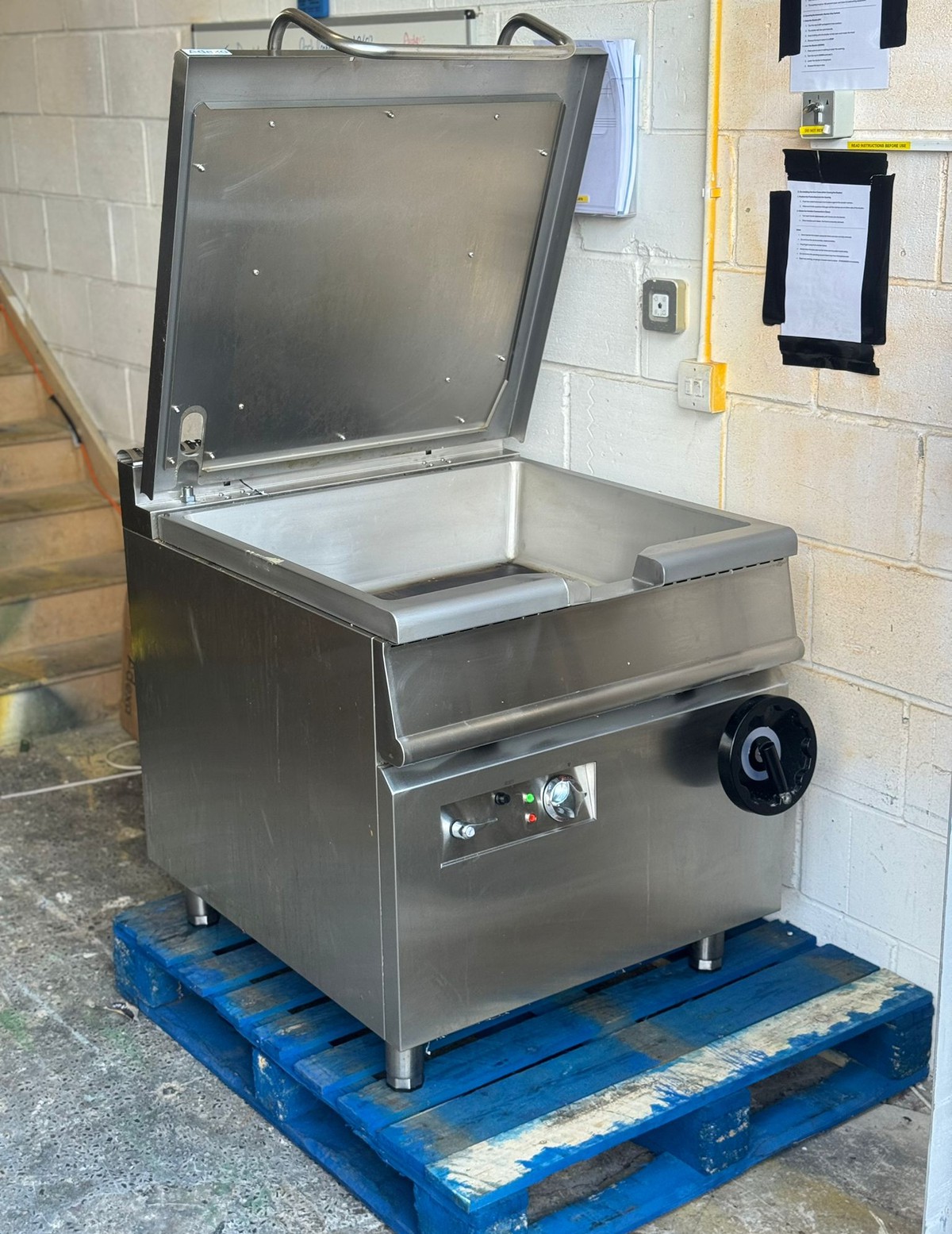 **USED ONLY ONCE!*** £2500 new !This professional tilting bratt pan is a heavy-duty commercial cooking appliance capable of performing up to eight cooking functions – including braising, boiling, steaming, poaching, stewing, roasting, frying, and even sautéing.