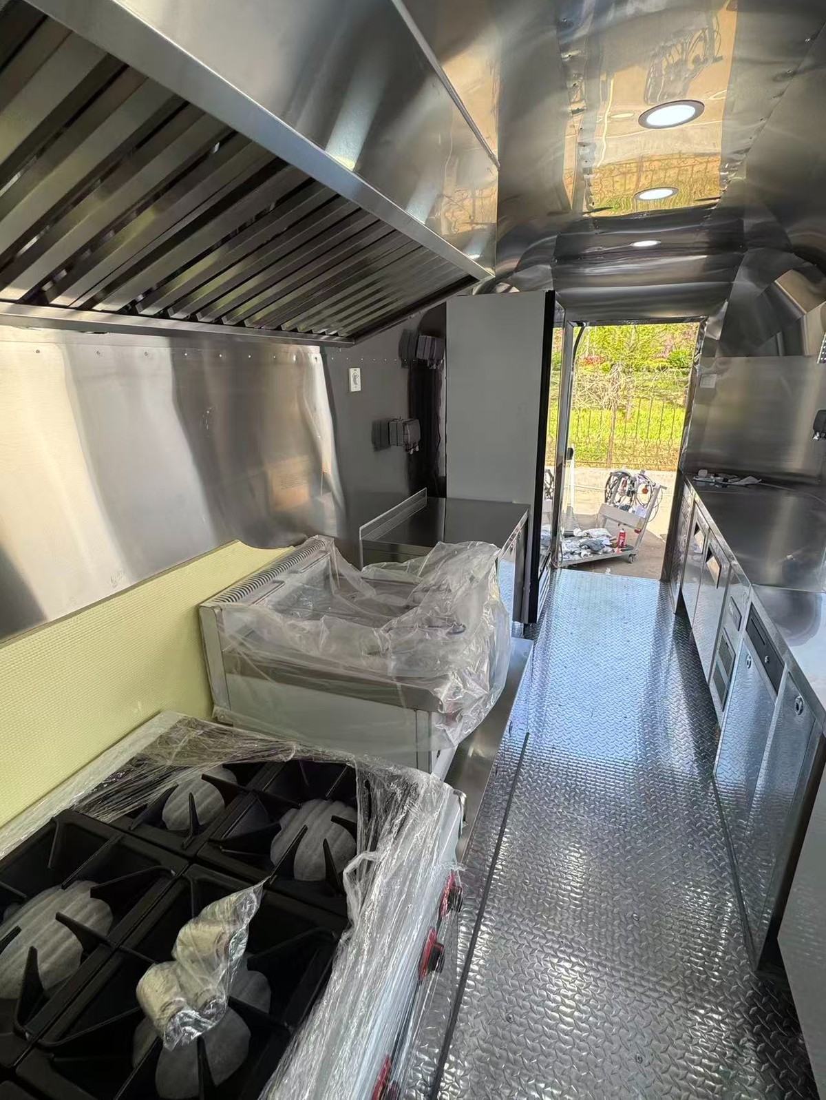 The trailer equipment includes, 6 ring gas burner, double deep fat fryer, two under counter fridges, upright drinks fridge, gas bottle holder, extractor fans, all comply with CE standards.