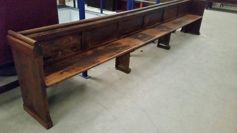 Traditional, Original Old Oak Pew with a length of 3.96m - 13.25 feet.
