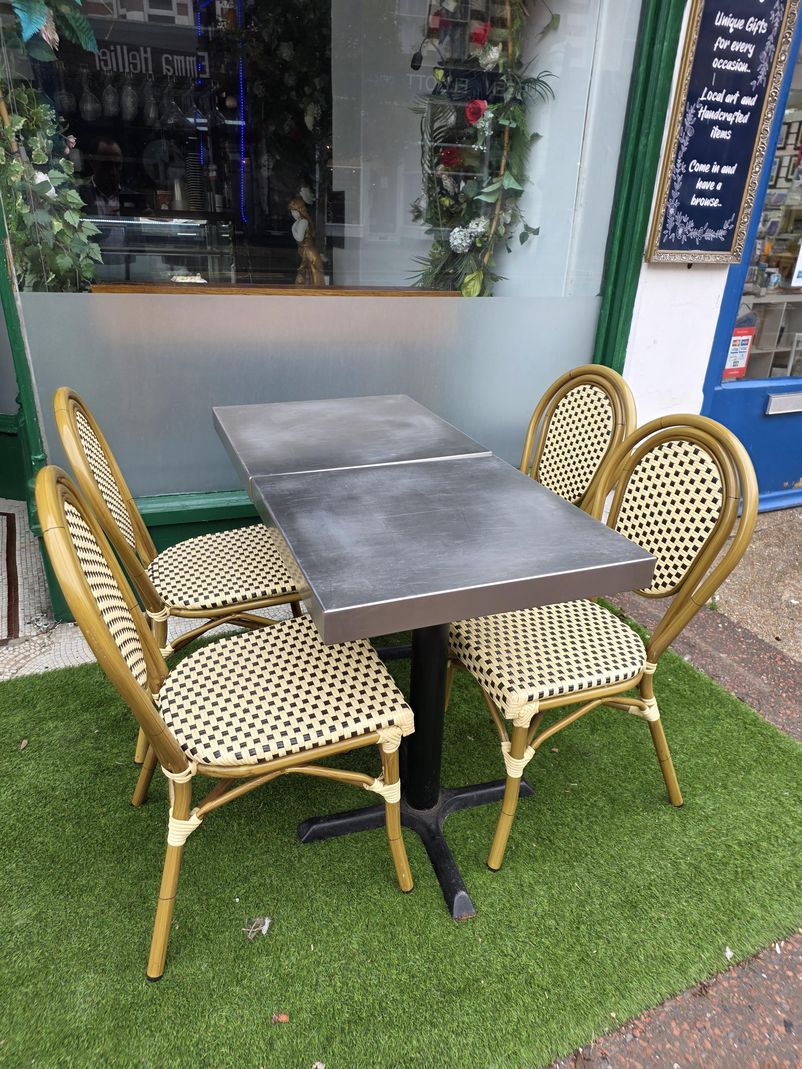 20 chairs and 10 stainless steel tables. Measurement 60 by 60