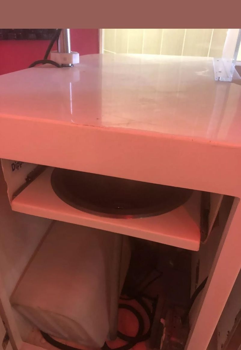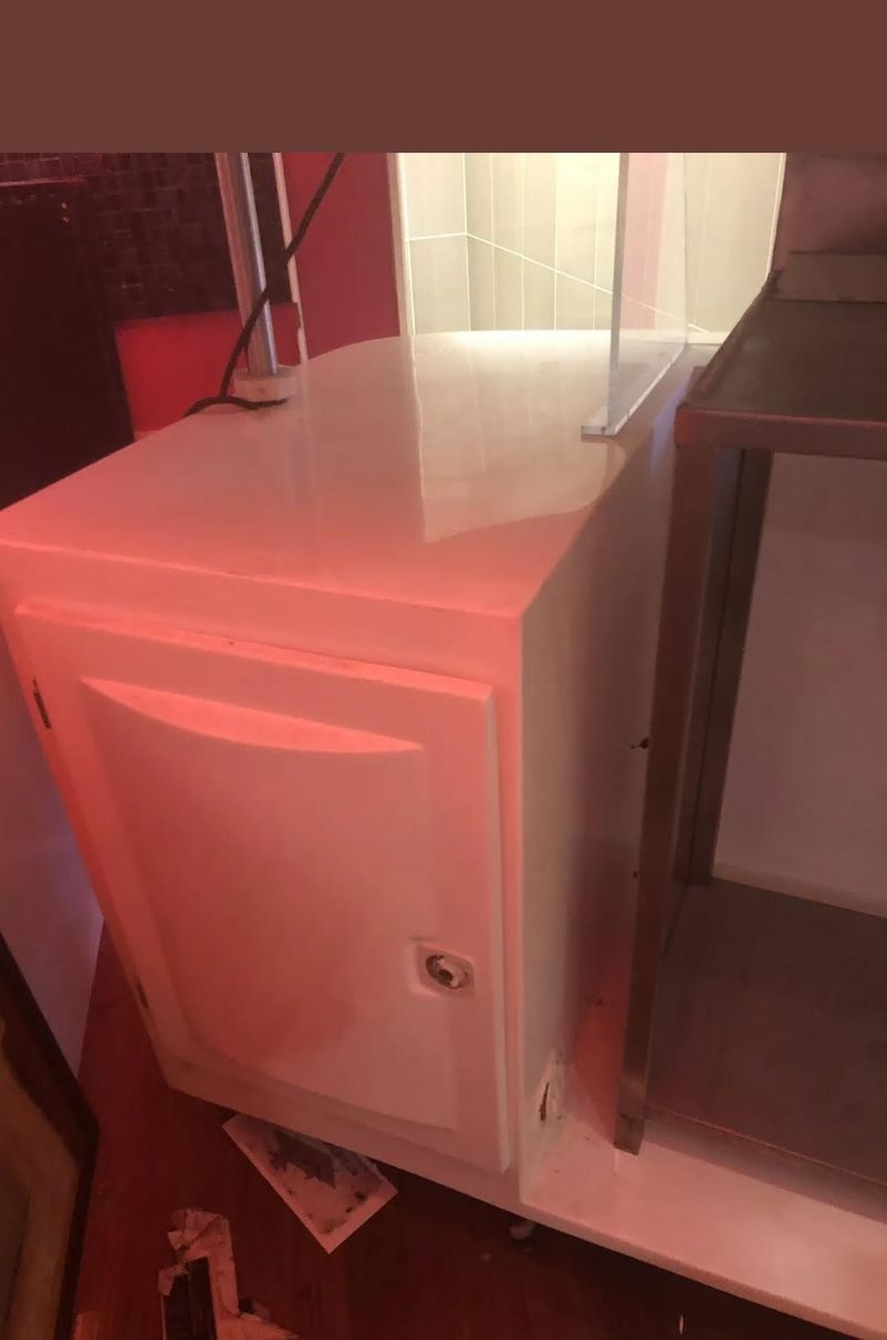It has wheels and also has a foldaway sink and a built-in water heater. The heating unit is set to the US Electrical Standards but it's easy to covert it. Dimensions: The base unit (Excluding Hood), is 200cm in length, 105cm in height, 90cm in depth. The Freezer bay: 124cm L X 82 H x 70 D.