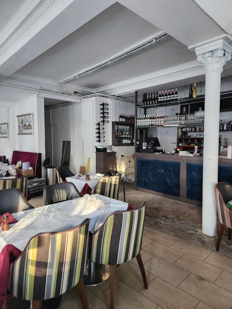 50 to 60 restaurant dining chairs for sale with curved, striped, fabric back