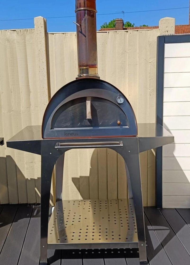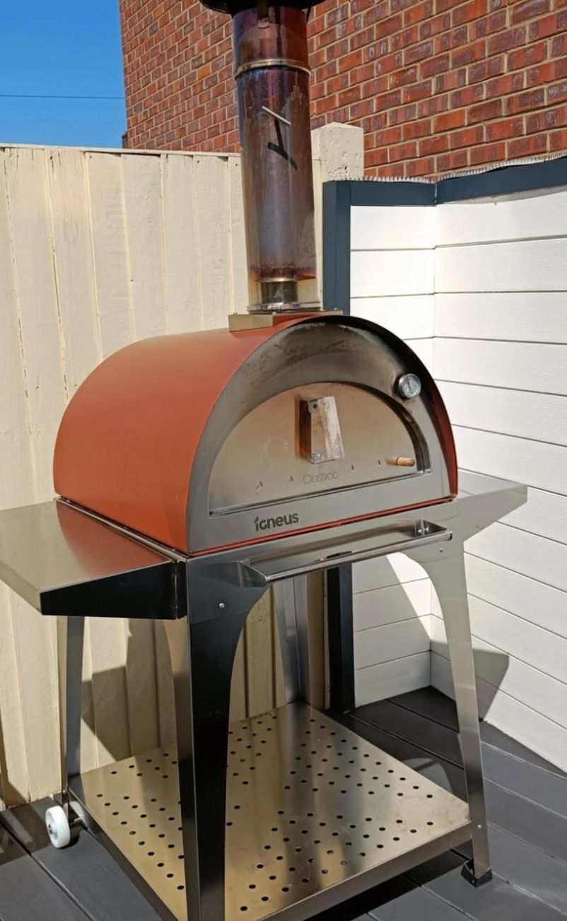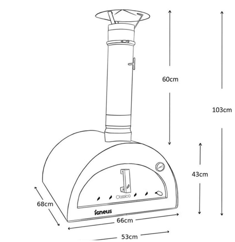 The Igneus Classico pizza oven is perfect for families and has been built for outdoor use. You will be able to cook two 12” pizzas in 60 seconds. Alternatively, it can also hold two large roasting trays, if you want to roast meats/ veg instead of cooking pizzas. The Classico only takes 15-20 minutes to get up to the ideal pizza cooking temperature (400°C). With an internal cooking area of 60x60cm, the Classico has a fantastic cooking capacity.