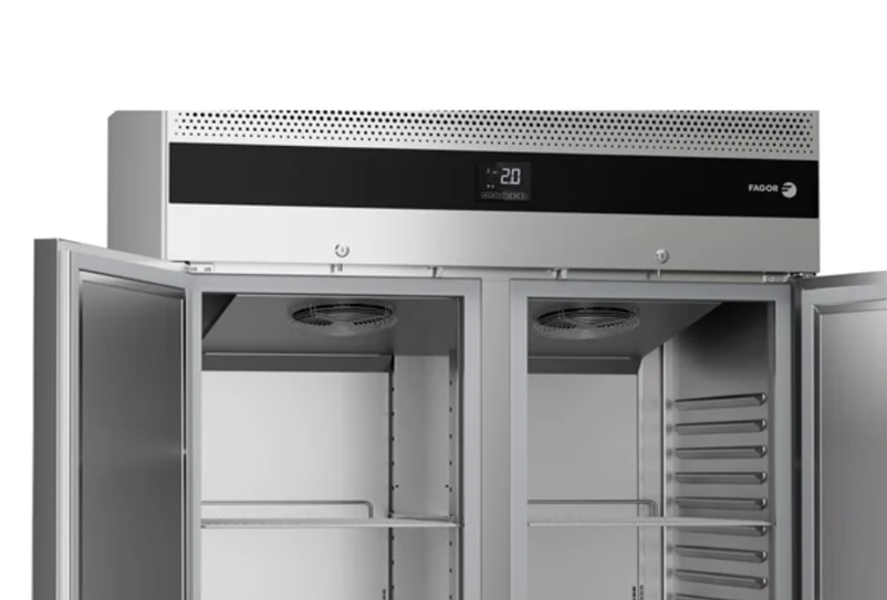 Features: Stainless steel exterior Top mounted refrigeration Built-in door handle Embedded inner tray slides (23 positions) Inner LED lighting Reversible door (Right hinged standard) Open door delay alarm Stay open and self-closing doors Key lock as standard Built-in drainage Forced draught cooling system Climatic class IV Digital thermometer with temperature control Height adjustable stainless steel legs Castors included Comes with UK 3-pin plug
